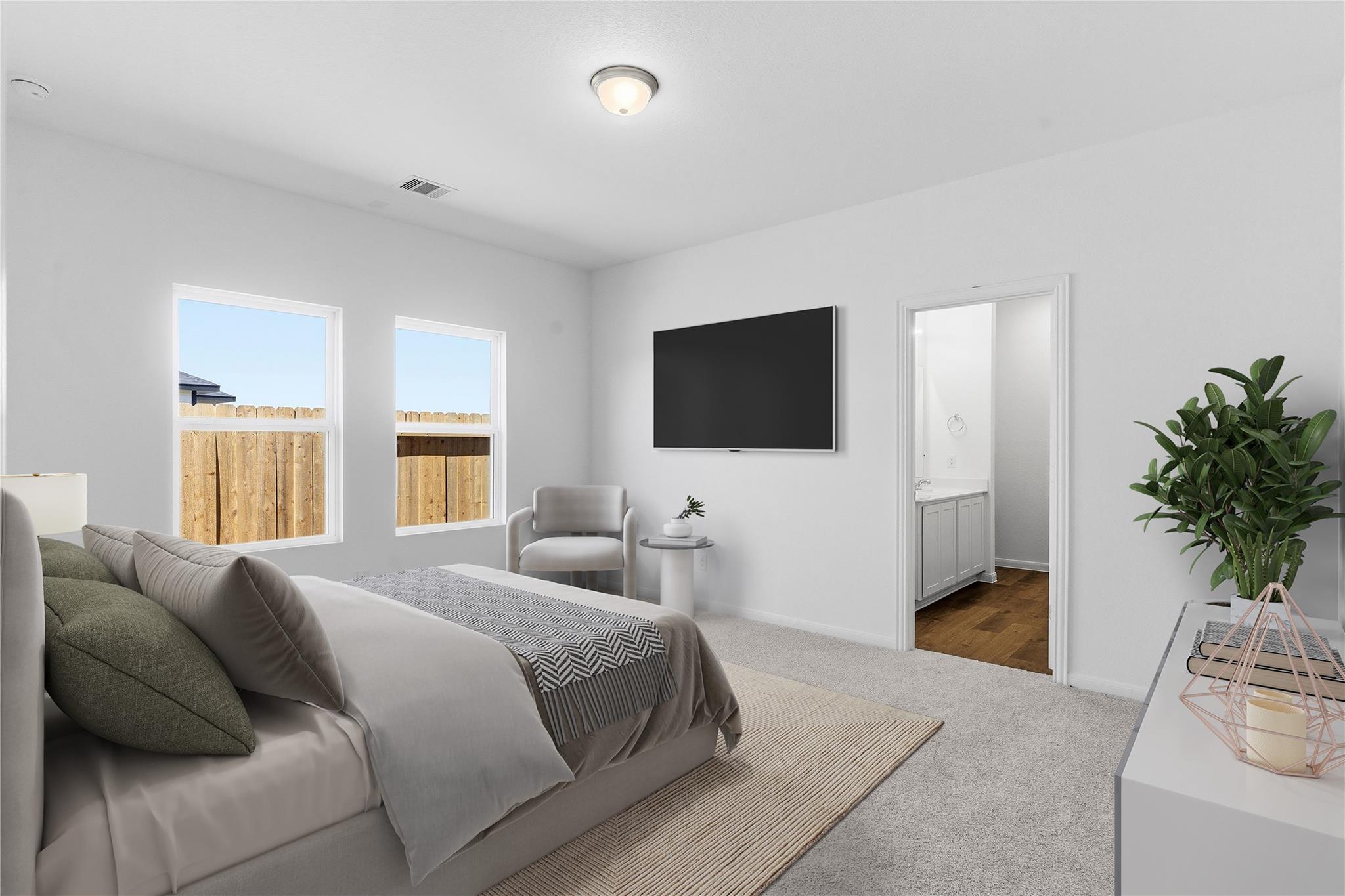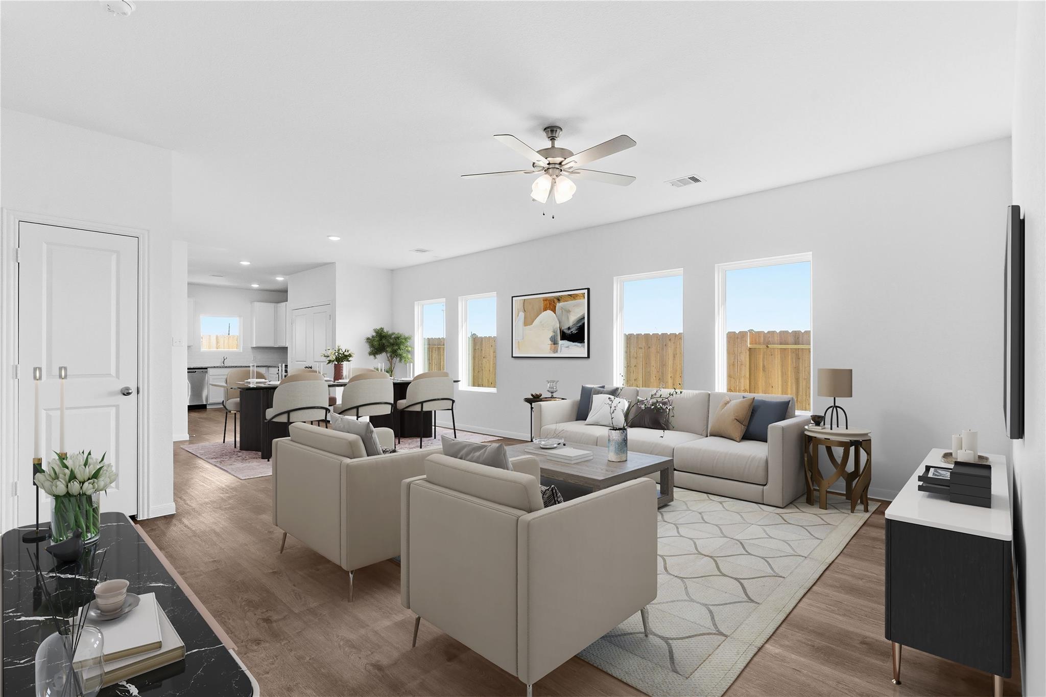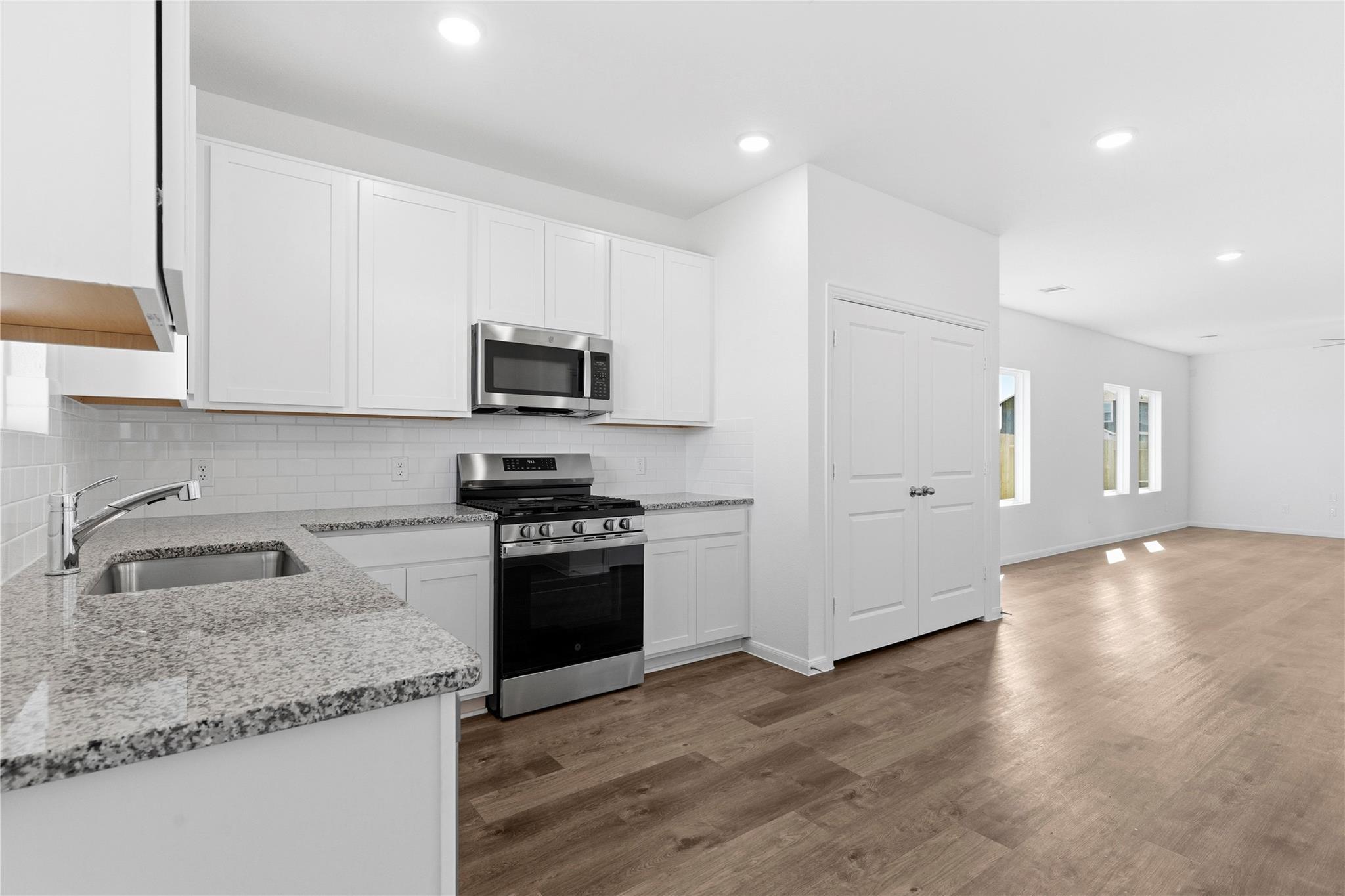 The Pecan Floor Plan by CastleRock Communities! This well-designed home offers 3 bedrooms and 2.5 baths with a beautiful brick elevation for timeless curb appeal. Step inside through a mahogany front door into a bright interior where vinyl plank wood flooring flows throughout an open-concept layout with high ceilings. The gourmet kitchen features granite countertops, chic tile backsplash, 42-inch shaker cabinets, deep undermount sink, an upgraded faucet, and stainless-steel gas appliances. The private primary suite provides a relaxing retreat with dual vanities, a massive shower, and a walk-in closet. Two secondary bedrooms share a full bath with a tub and shower combination, along with a convenient half bath for guests. Enjoy outdoor living on the covered patio, with blinds on all windows for added comfort. Energy Star Certified with a tankless on-demand water heater. Located in the beautiful Sweetgrass Village community with parks, a clubhouse, pickleball courts, and a swimming pool.